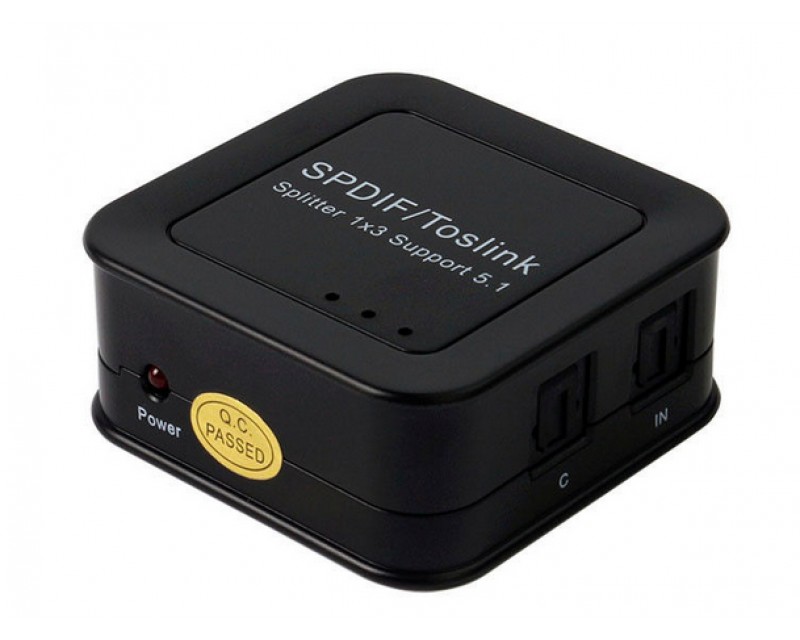 This SPDIF/TOSLINK Digital Optical Audio splitter allows you to distribute input digital optical audio to three amplifiers or receivers, seamlessly and flawlessly without degradation. It supports LPCM2.0, DTS and Dolby-AC3 audio formats.